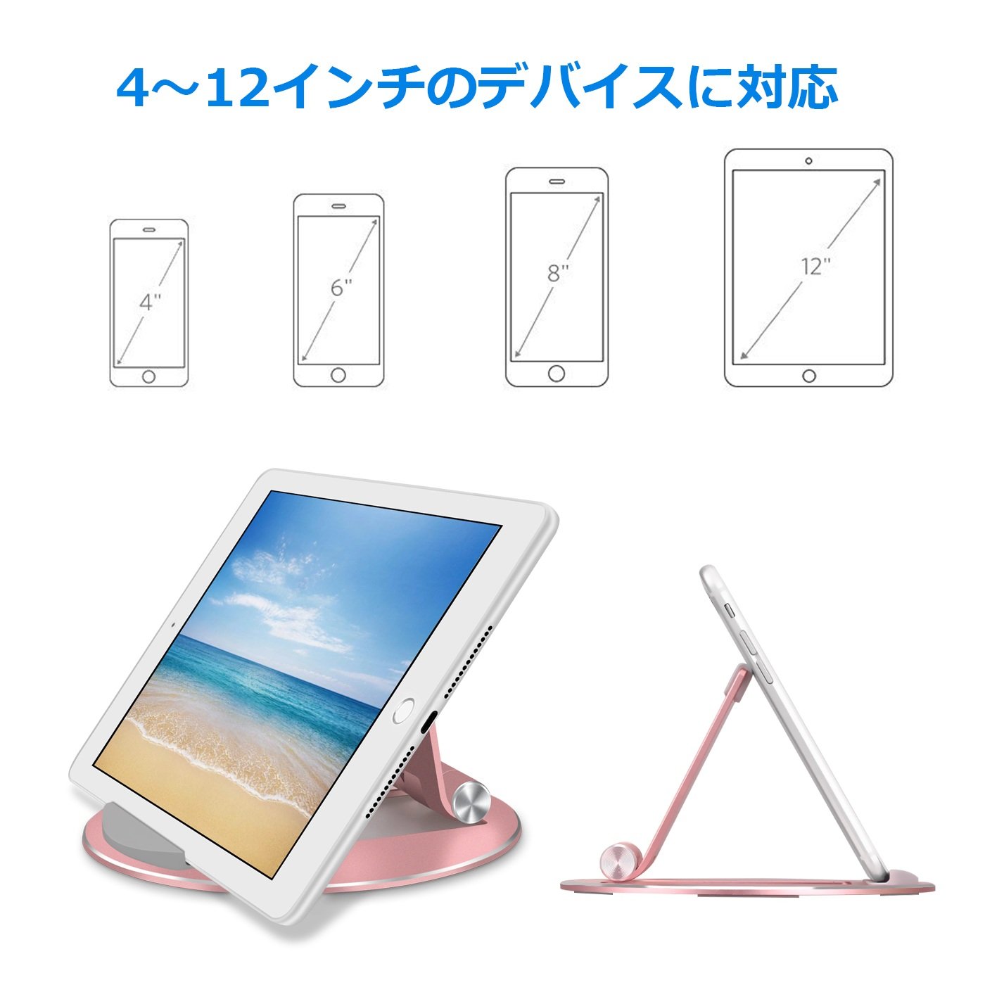 タブレット・スマホ用スタンド GOOJODOQ アルミ合金素材 180度調整可能 (ローズゴールド)