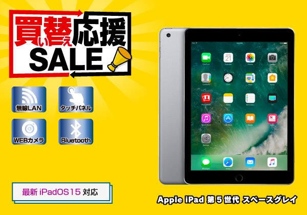 Apple iPad 第5世代 A1822 Wi-Fiモデル 32GB スペースグレー(CPU: Apple A9 1.85GHz/メモリ:2GB/ストレージ:32GB)教育や仕事に使えるアプリが豊富♪ 長崎店