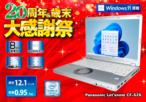 Panasonic Let'snote CF-SZ6(Corei5 7300U 2.6GHz/メモリ8GB/SSD256GB)ビジネスノートPCの決定版!2016年式レッツノート Windows11モデル WEB広告