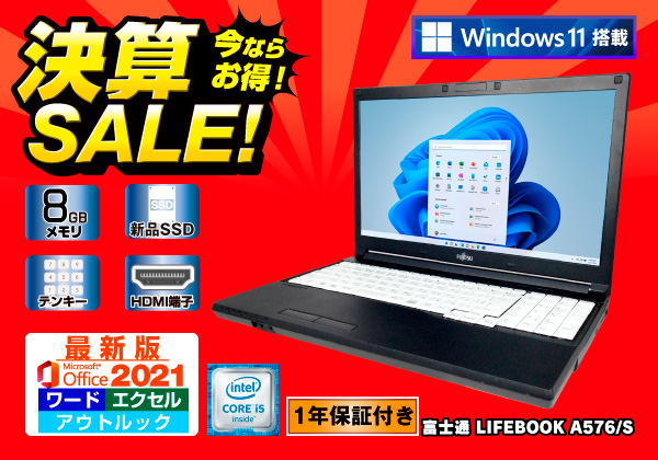 富士通 LIFEBOOK A576/S テンキー Windows11 ワード・エクセル【パソコン祭対象品】