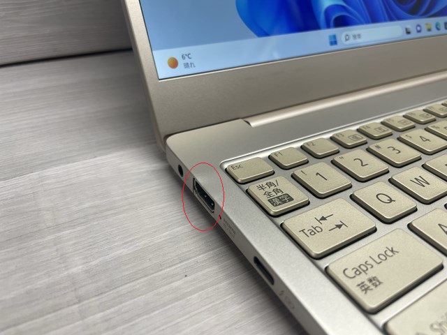 1本のケーブルで、映像・音声をテレビやモニターに出力できるHDMI端子付き。例えば書類作成などの細かい作業でも、大画面で行うことで作業効率アップ。また、映画の高精細な映像を大画面で楽しむこともできます。