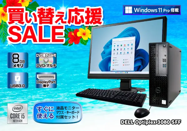 DELL Optiplex 3080 SFF(CPU:Core i5 10500 3.1GHz/メモリ:8GB/SSD:256GB) すぐに使えるモニター・マウス・キーボードセット! Web広告