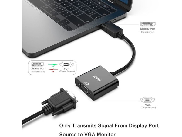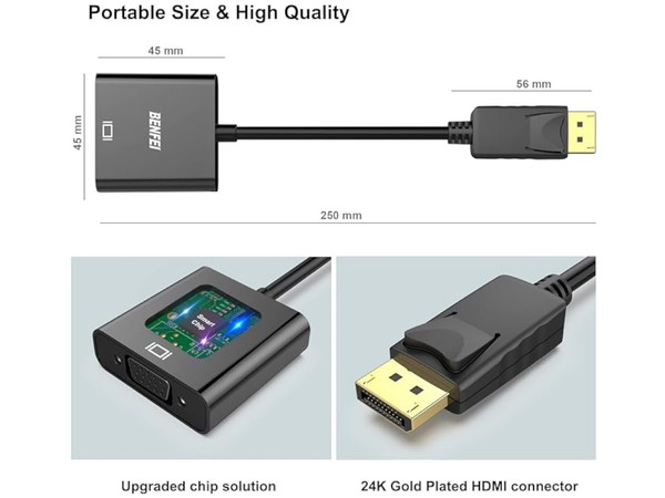 内蔵の高度なICチップがDisplayPortデジタル信号をVGAアナログ信号に変換します。 これは双方向コンバータではなく、VGAからDisplayPortに信号を送信できません。 プラグインアンドプレイ製品であり、ソフトウェアのインストールは不要です。