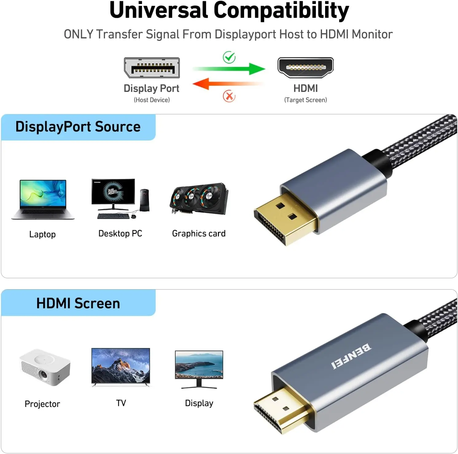 BENFEI DisplayPort-HDMI変換ケーブル 4K 1.8m グレー 000273grey