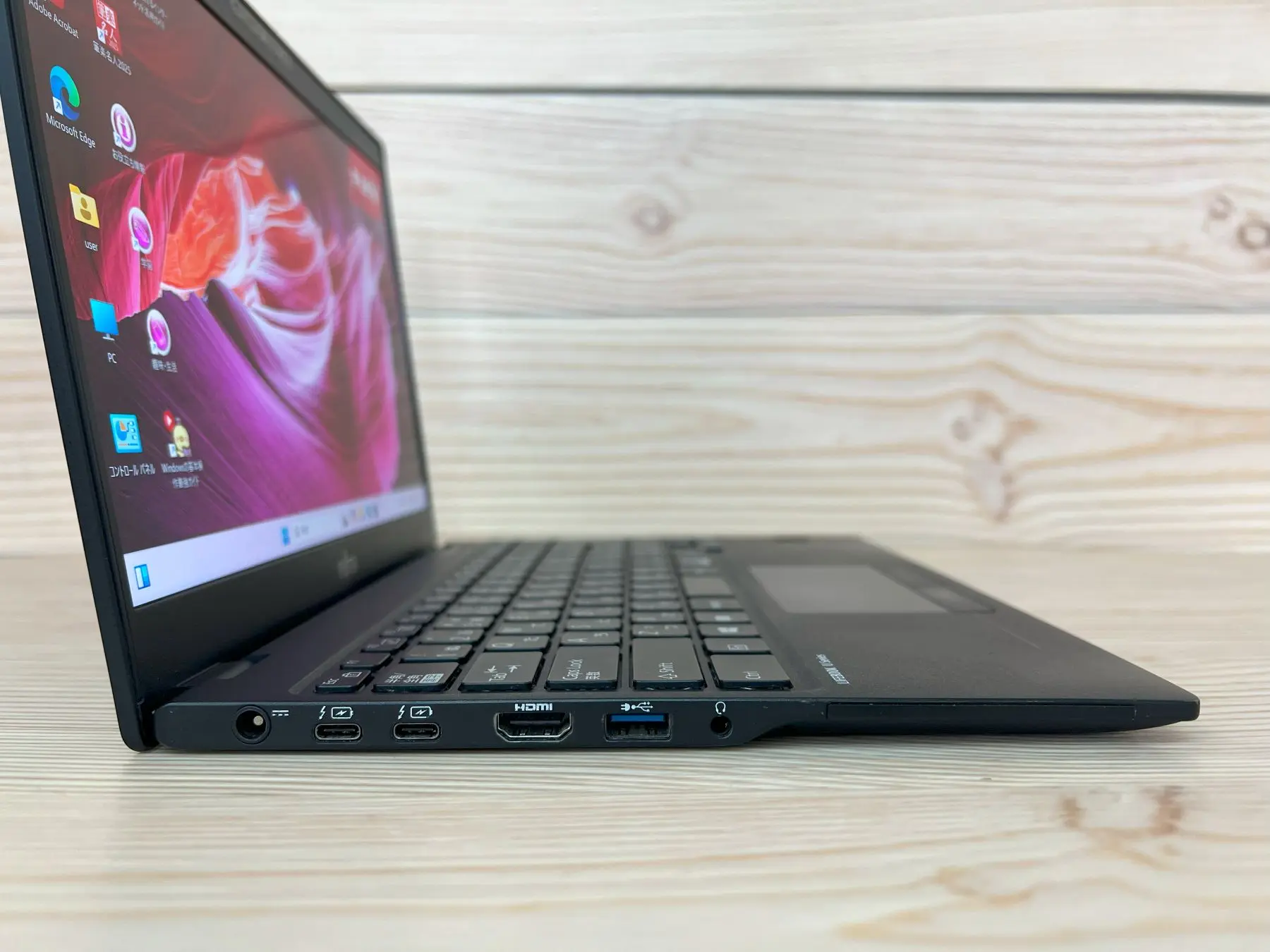 1本のケーブルで、映像・音声をテレビやモニターに出力できるHDMI端子付き。例えば書類作成などの細かい作業でも、大画面で行うことで作業効率アップ。また、映画の高精細な映像を大画面で楽しむこともできます。