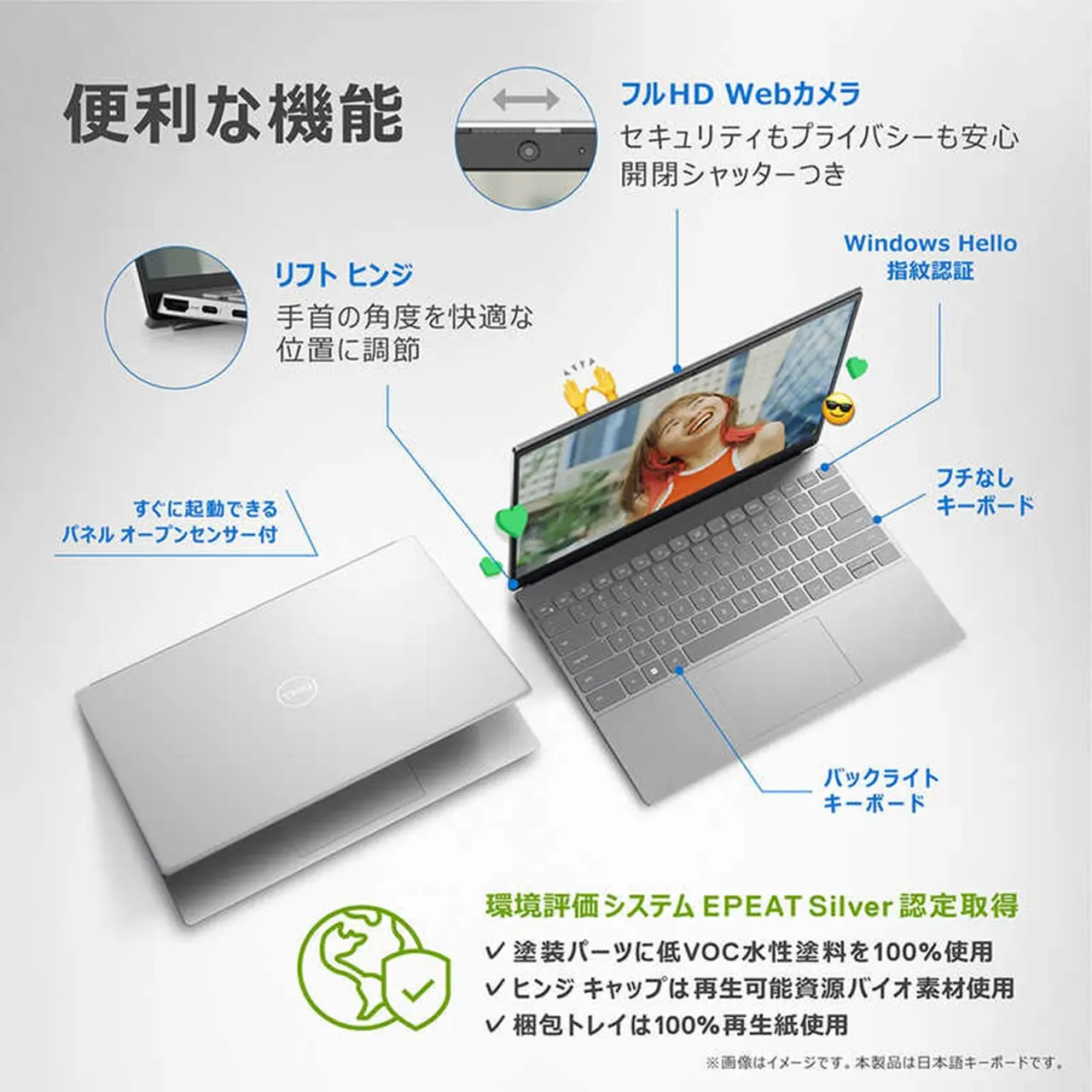1本のケーブルで、映像・音声をテレビやモニターに出力できるHDMI端子付き。例えば書類作成などの細かい作業でも、大画面で行うことで作業効率アップ。また、映画の高精細な映像を大画面で楽しむこともできます。