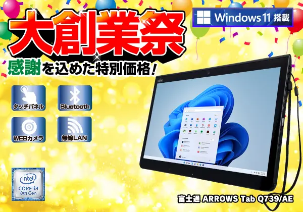 富士通 ARROWS Tab Q739/AE(CPU:Core i3 8145U 2.1GHz/メモリ:4GB/SSD:128GB)第8世代CPU搭載タブレットPC! WEB広告 関東倉庫販売