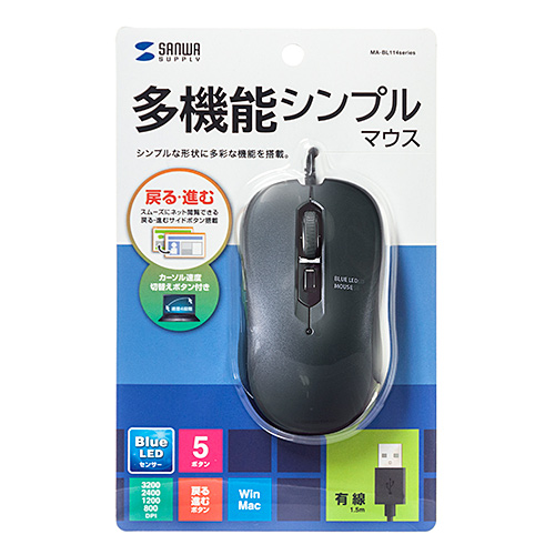 サンワサプライ 有線マウス 5ボタン ガンメタ MA-BL114GM