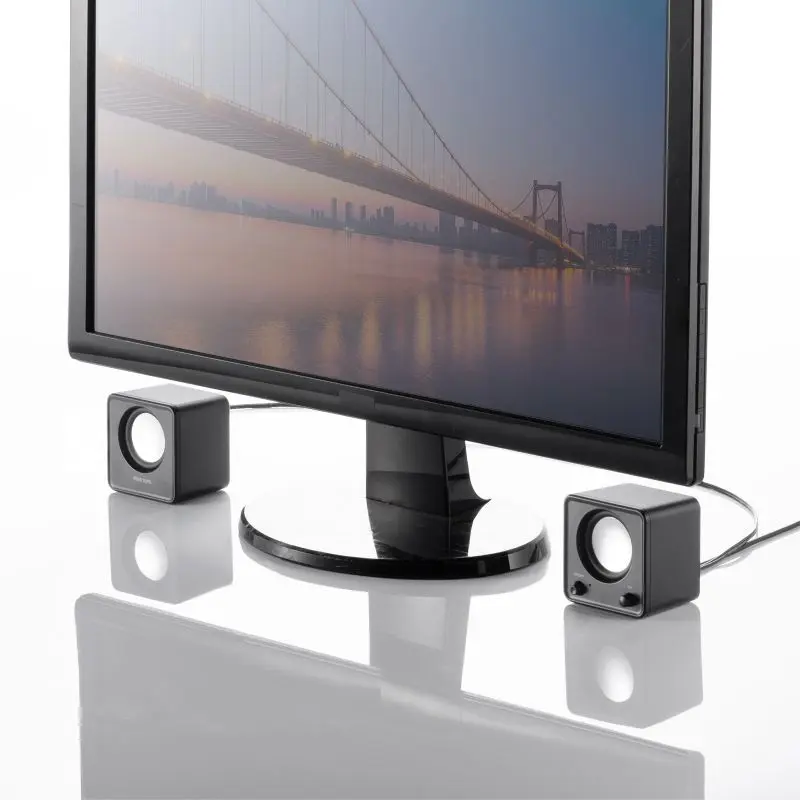 モニター下や机上ラックなどどこにでも設置できる超コンパクトサイズスピーカーです。