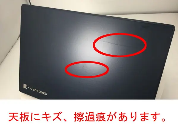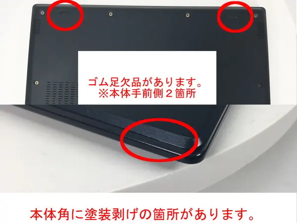 - 【訳あり理由:天板に打痕・擦過痕・キズ、天板角に塗装剥離があります。PC本体手前側のゴム足2箇所が欠品しています。】