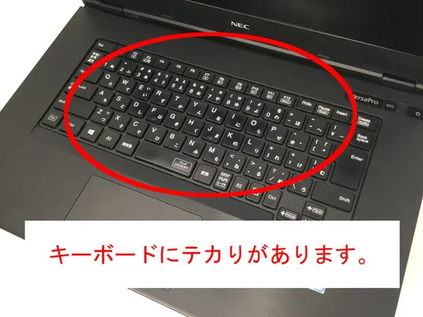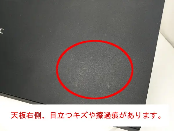 - 【訳あり理由:天板に擦過痕やシール跡、パームレストにテカり、キーボードにテカりがあります。】