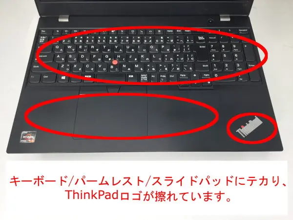 パームレスト右下のThinkPadロゴが擦れています。】