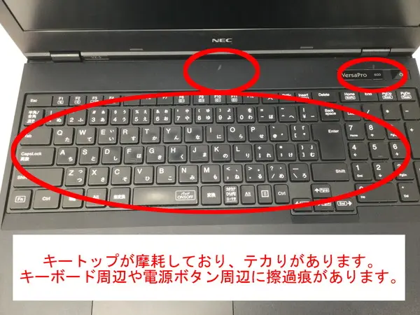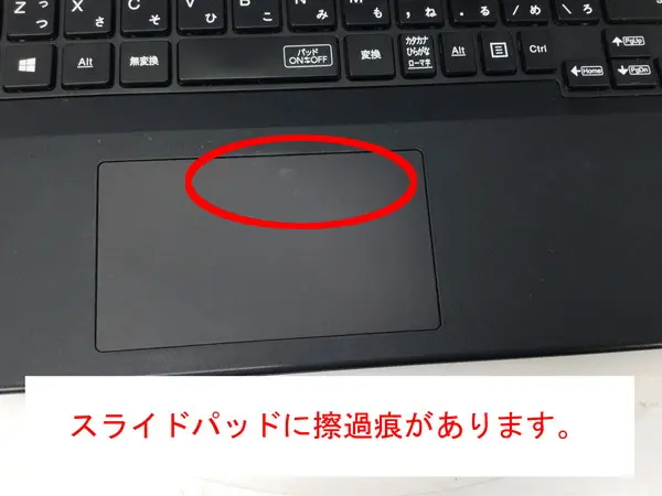 - 【訳あり理由:天板に目立つキズ/擦過痕が複数あります。スライドパッドやキーボード周辺に擦過痕があります。キートップが摩耗しており、テカりがあります。】