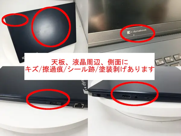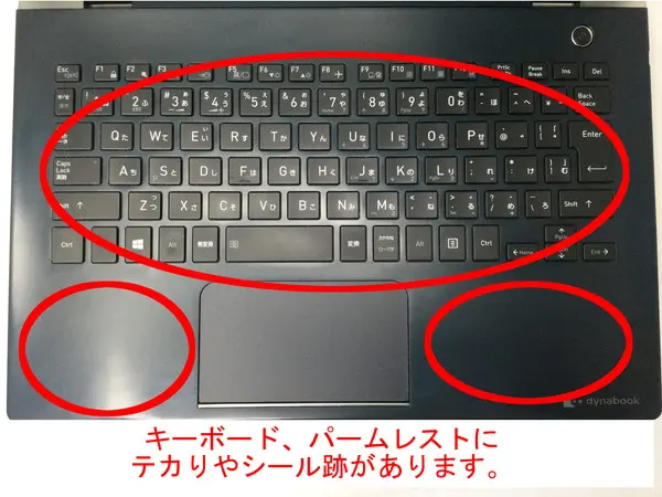 液晶画面周辺にキズがあります。キーボードやパームレストにテカりがあります。