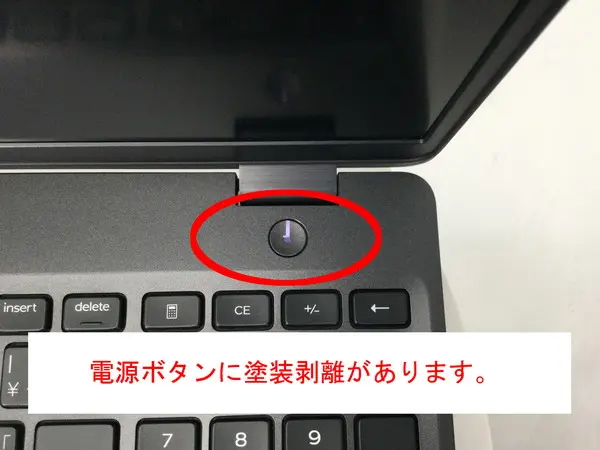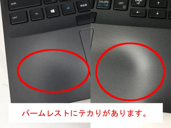 - 【訳あり理由:電源ボタン表面の塗装が剥がれています。天板にシール跡があります。パームレストにテカりがあります。】
