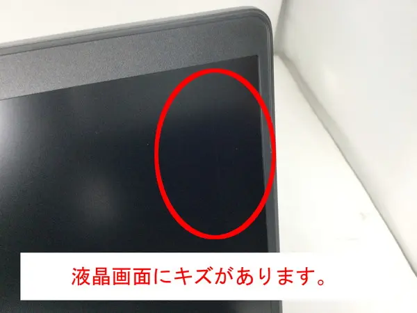 - 【訳あり理由:電源ボタン表面の塗装が剥がれています。液晶に輝度ムラやキズがあります。天板にキズやシール跡があります。パームレストに擦過痕があります。】