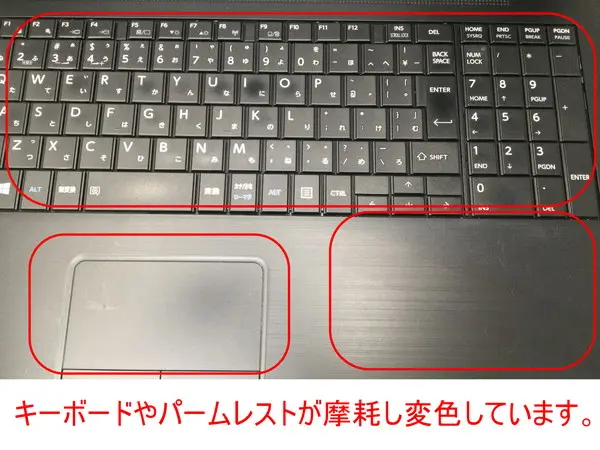 - 【訳あり理由:キーボードやパームレストが摩耗し変色しています。/天板にキズや広範囲の擦過痕があります。】