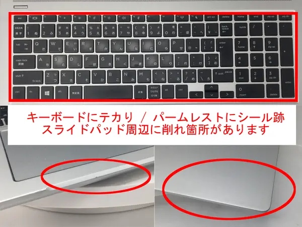 - 【訳あり理由:液晶画面にキズがあります。天板とパームレストに目立つシール跡があります。】
