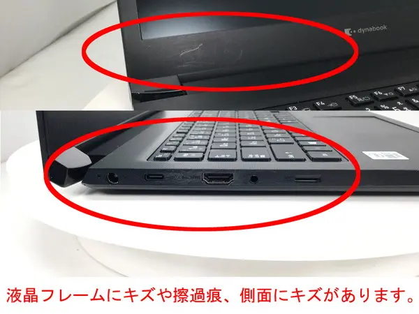- 【訳あり理由:天板や側面にキズがあります。液晶フレーム部に擦過痕やシール跡があります。