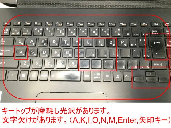 【キートップが摩耗し光沢があります。文字欠けがあります。(A,K,I,O,N,M,Enter,矢印キー)】