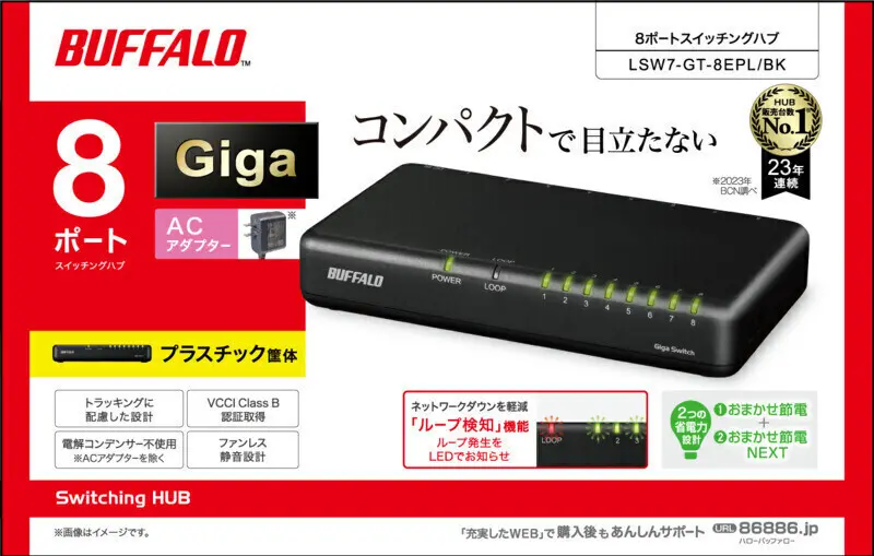 BUFFALO スイッチングハブ 8ポート Giga対応 ブラック LSW7-GT-8EPL/BK