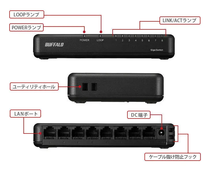- スリム&コンパクトボディのGiga対応スイッチングハブ