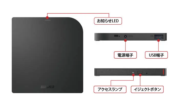 BUFFALO ポータブルDVDマルチドライブ USB3.2 ブラック DVSM-PUV8U3-BK/N