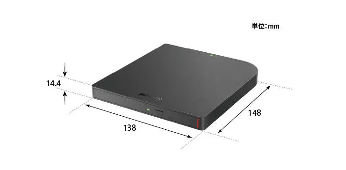 - ●USBケーブル1本をパソコンにつなぐだけで手軽にご利用いただけるポータブルDVDドライブです。